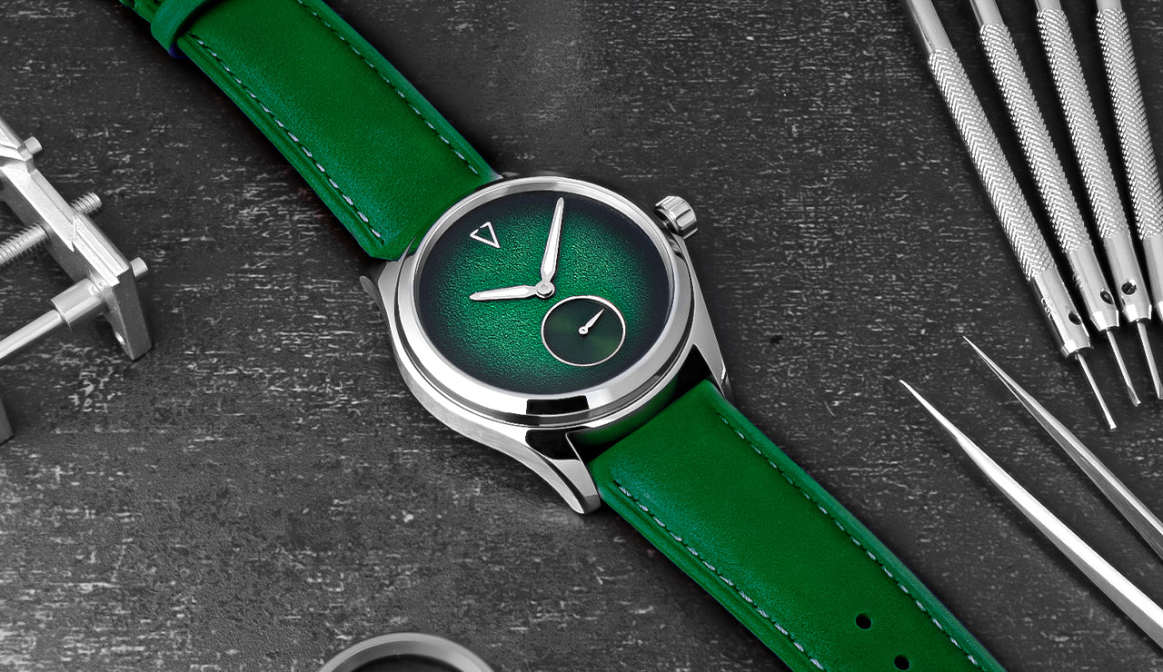 The brand's distinctive style is minimalist design and innovation. We are a niche microbrand whose goal is to design timeless yet contemporary products. We love minimalism and the combination of new and old watchmaking techniques, such as dials, which is one of our passions.